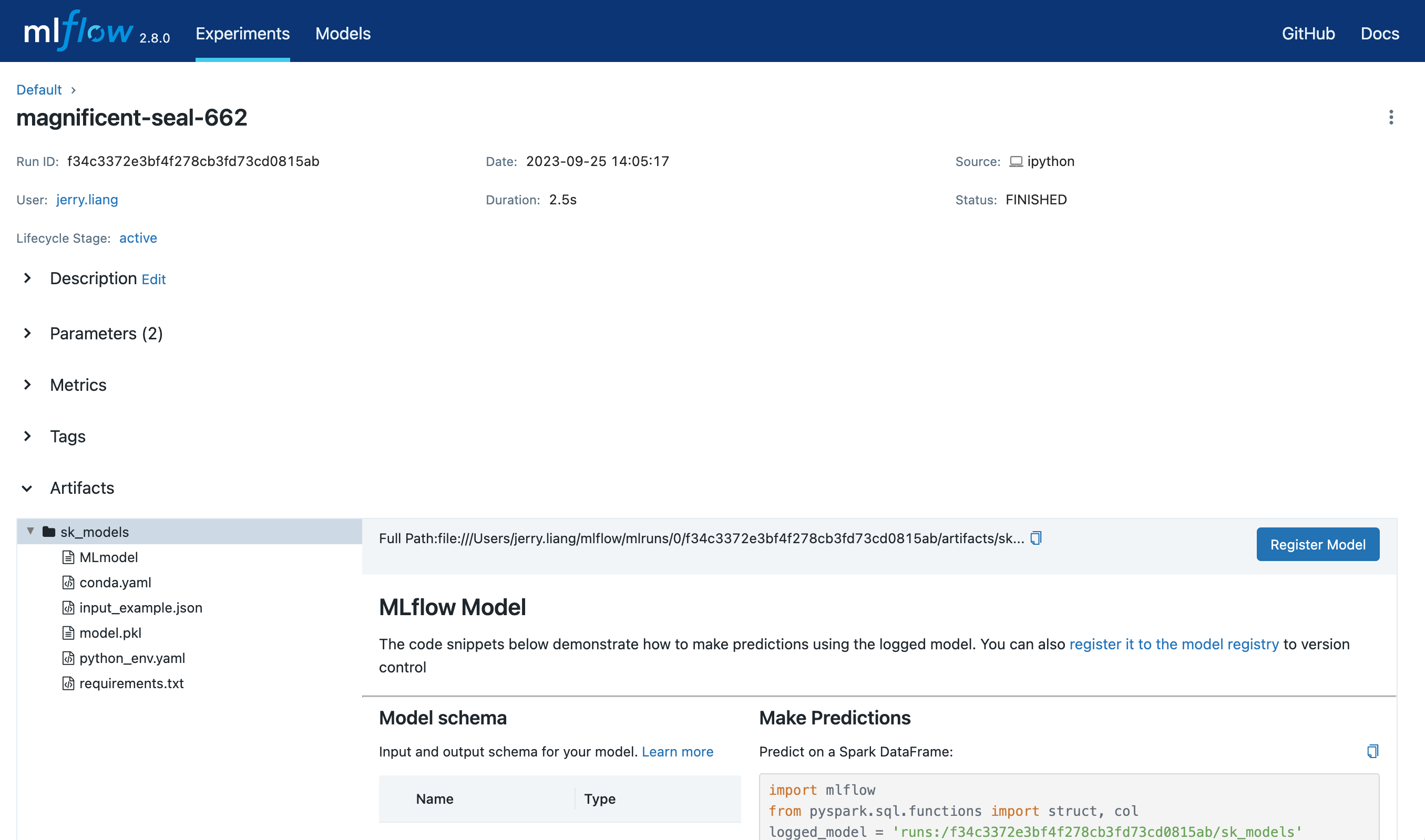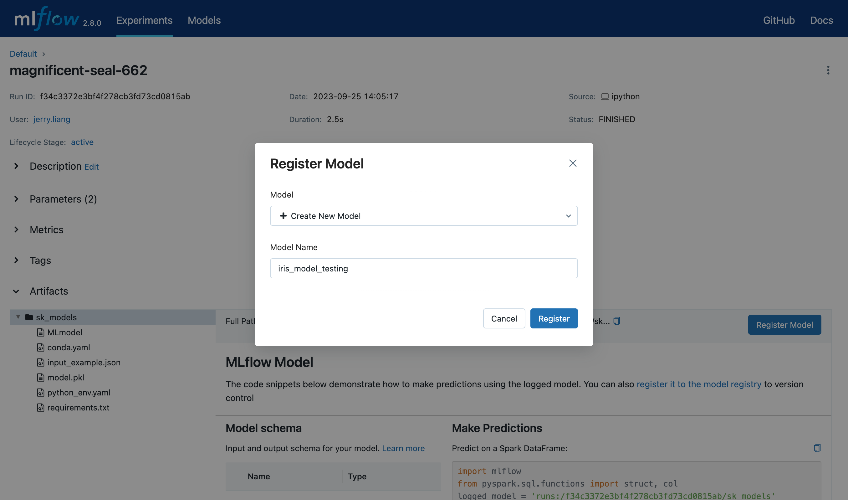 Register a model on MLflow UI